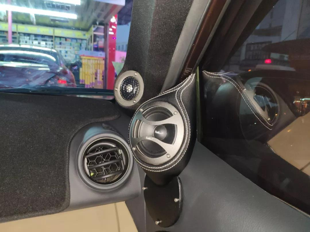 前声场选择了丹麦芬朗顶级北欧之声系列EU-6.3,顶级6.5寸三分频扬声器系统,丹麦芬朗顶级北欧之声系列以其精准全面,温暖通透的极致声音表现同样不可或缺,始终坚持在原产地丹麦生产,是众多追求HI-FI品质的汽车音响爱好者的共同选择,高音倒模在三角位,中音倒模在A柱,中低音安装在原车前声场喇叭位。